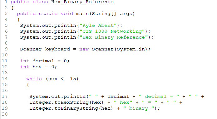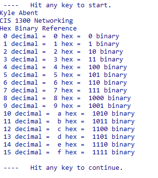 Hex Binary Reference